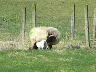 Feeding is the essential part of the bonding process, and the lamb was to going to the wrong ewe would cause problems further down the line . So we had to go and herd the intruder away , allowing the lamb to feed from its mother .